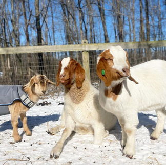 One of his favorite playmates is fellow youngster Moose, and the two often run around and bump heads! The two have also decided that Vinegar Tom is their adoptive grandfather, and can be found following the larger (and older) goat around the pasture. Don't worry though, the feeling is absolutely mutual, and the three love to spend time lounging around the field together.